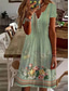 Damskie Sukienka midi Sukienka letnia Sukienka t-shirtowa Sukienka A line Urlop Codzienny Styl plażowy Plaża Wyjściowe Regularny Kwiaty Graficzny Krótki rękaw W serek Niebieski Biały Zielony
