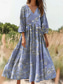 Damskie Sukienka maxi Sukienka letnia Plisowana sukienka Urlop Codzienny Boho Wyjściowe Plaża Luźna Kwiaty Graficzny Abstrakcja Rękaw 3/4 W serek Rumiany róż Niebieski Pomarańczowy