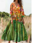 Damskie Sukienka maxi Codzienne sukienki Elegancki Codzienny Urlop Codzienny Regularny Geometryczny Rękaw 3/4 W serek Czarny Wino Fioletowy Zielony Lato