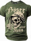 Męska koszulka z zabawnym motywem starego człowieka grafika czaszki z palcem środkowym i napisem 'Böser alter Mann' oliwkowo-zielona krótki rękaw