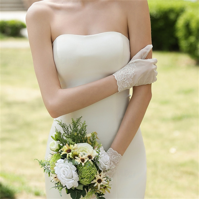 Koronka / Tiul Do nadgarstka Rękawiczka Elegancja / Impreza / Wieczór / Elegancki Z Czysty Kolor Ślub / Strona rękawic