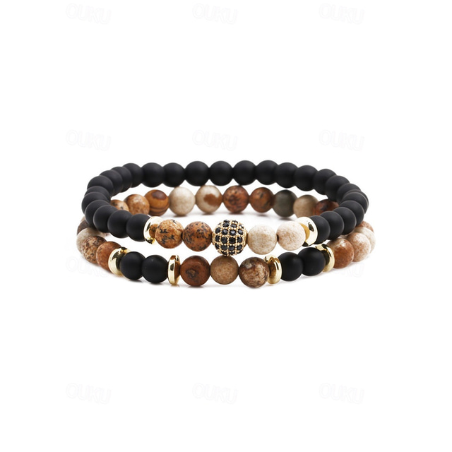 Zestaw bransoletek z koralików z naturalnych kamieni dla mężczyzn, prezent świąteczny, wielokolorowy, wyjątkowe matowe i polerowane kamienie, stylowy dodatek na przyjęcia świąteczne, do noszenia na co dzień i na uroczystości