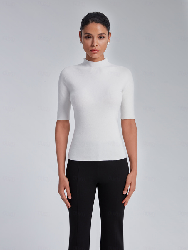 Damskie Jednokolorowe Na zewnątrz Dom Biuro Czarny Biały Dzianina Miękkie Rękaw do połowy Elegancja Moda Śłodkie Sztuczna szyja Lato Wiosna