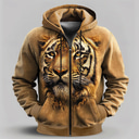 Męskie Tygrys Z kapturem Moda Nowoczesne Codzienny Długi rękaw Kaptur Streetwear Urlop Wyjściowe Brązowy Ściągana na sznurek Zamek Jesień Zima Projektant S M L XL XXL XXXL |