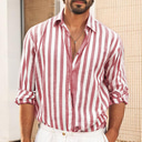 koszula męska zapinana na guziki koszula na co dzień koszula letnia koszula różowy niebieski zielony z długim rękawem paski klapa hawajska wakacje odzież zapinana na guziki odzież moda na co dzień wygodne |