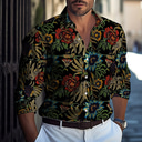 Męskie Koszula Zapinana na guziki koszula Długi rękaw Artystyczny Dzienne zużycie Wyjściowe Jesień i zima Wieczorne Nadruk Przycisk w dół Jasnoniebieski Czarny Królewski błękit Niebieski Fioletowy |