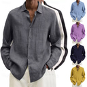 męska bawełniana koszula lniana czarna różowa granatowa długi rękaw gładka odsłaniająca ubranie na wakacje odzież świąteczna poliester moda swobodna |