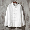 Męskie Koszula lniana koszula Koszula z kołnierzykiem chińskim Koszula z kołnierzykiem typu stójka Codzienna koszula Bawełniana koszulka Równina Urlop Hawajskie Czarny Biały Granatowy Beżowy Długi |