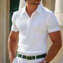 Męskie Koszulki polo waflowe Teksturowany Codzienny Święto Klapa Prążkowany kołnierzyk polo Krótki rękaw Moda Podstawowy Równina Guziki Miękkie Lato Wiosna Regularny Biały Żółty Burgundowy Miętowy |