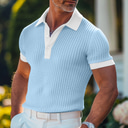 Męskie Teksturowany Koszula golfowa Biznes Codzienny Klasyczny Krótki rękaw Moda Stary styl pieniędzy Jednokolorowe Guziki Dzianiny Lato Wiosna Regularny Jasnoniebieski Biały Burgundowy Khaki Szary |