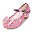 dziewczęce błyszczące buty na imprezę w stylu księżniczek – błyszczące buty typu Mary Jane z kokardką i kryształkami, idealne na wesela i specjalne okazje |