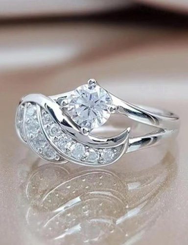 1pç Anel ajustável For Mulheres Zircônia Cubica Claro Presente Diário Trabalho Zircão Cobre Formato de Folha