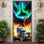 Banner de porta futurista com paisagem urbana de planeta cósmico de ficção científica, planeta com anéis azuis brilhantes, portal da galáxia, capa de porta para quarto, sala de jogos, hall de entrada,