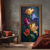 Pintura a óleo impressionista artística de tulipas, flores coloridas em tons de roxo e azul, ideal para decoração de porta, hall de entrada, sala de estar, interiores e áreas externas.