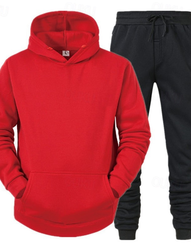 Homens Moletom Suéter Conjunto de moletons Preto Vermelho Cinza Claro Preto+Cinza Cinzento Com Capuz Bloco de cor Com Cordão 2 Peças Bolso frontal Desportos e Ar livre Diário Feriado Poliéster Roupa