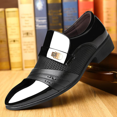 mocassins sociais masculinos de couro sintético envernizado – sapatos formais sem cadarço com detalhes em malha e fivela de metal estilosa para casamentos e negócios