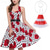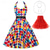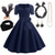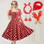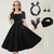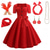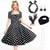 Vestido Feminino A-Line Rockabilly Vestido de Poá Vestido de Swing Vestido Flare com Conjunto de Acessórios Trajes de Grease Anos 1950 Vintage Retro dos anos 60 com Faixa de Cabeça Lenço Brincos Para