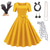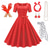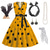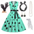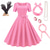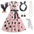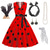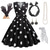 Vestido de Fantasia Saia de Poodle dos anos 1950 para Mulheres Conjunto de Acessórios dos anos 50 Vestido Luva Cinto Faixa de Cabelo