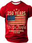 4 de Julho de 2026 250º Dia da Memória Camiseta de Gola Redonda com Manga Curta Patriótico Patriot Impressão 3D Diário de Rua