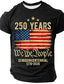 4 de Julho de 2026 250º Dia Memorial Camiseta Masculina Imprimida em 3D Bandeira dos EUA Gola Careca de Manga Curta Dia a Dia