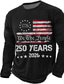 4 de Julho de 2026 250º Dia da Memória Camiseta Masculina com Estampa 3D Decote Redondo Manga Longa Casual Dia a Dia