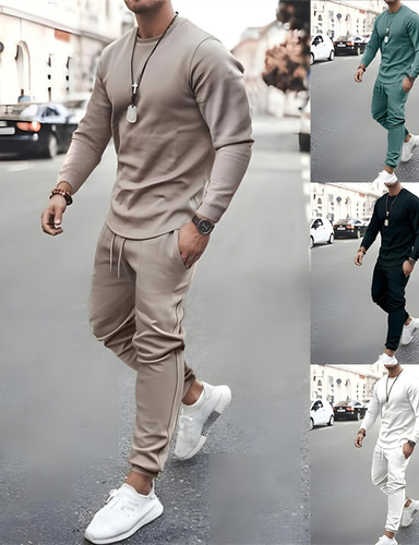Homens Tecido Suéteres básicos Moletom Suéter Manga Longa Moletom Gola Redonda Roupa de rua Básico Casual Desportos e Ar livre Diário Feriado Com Cordão 2 Peças Primavera & Outono
