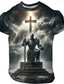 Homens Cruz dos Templários Estampas Abstratas Soldier Camiseta camisetas cristãs Manga Curta Camiseta Impressão 3D Gola Redonda Camisa Vintage Esportes Designer Ao ar livre Rua Diário Preto