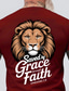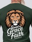 Camiseta masculina com estampa de cabeça de leão, salva pela graça mediante a fé, Efésios 2:8, cristã, religiosa e inspiradora. Modelagem padrão, para uso diário, ideal para igrejas. Disponível nos