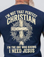 Camiseta masculina "Eu não sou um cristão perfeito, eu sou aquele que sabe que preciso de Jesus" com estampa de cruz, coroa de espinhos e símbolo religioso. Ideal para uso diário. Disponível nos