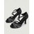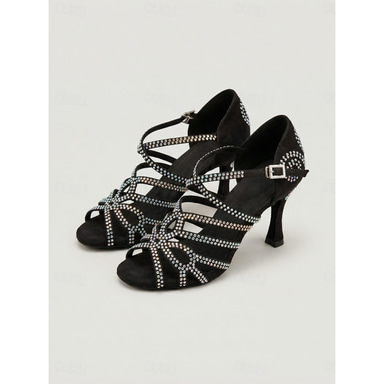 Sapatos profissionais femininos para dança latina - camurça preta com strass, adequados para dança de salão.