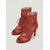 Sapatos de dança de salão femininos vermelhos com cadarço - sapatos latinos de bico aberto com tiras cruzadas no tornozelo, design floral em tela, salto médio confortável para festas. &eventos de