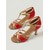 Sapatos de dança latina profissionais femininos - vermelhos &salto médio em cetim dourado