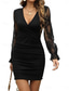 Mulheres Minivestido Vestido preto Vestido Coquetel Vestido formal Elegante Formal Bispo Festa Natal Formal Normal Côr Sólida Manga Longa Decote V Preto Primavera Outono