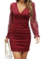 Mulheres Minivestido Vestido preto Vestido Coquetel Vestido da bainha Vestido formal Elegante Moda Férias Para Noite Final de semana Normal Tecido Manga Longa Decote V Preto Vermelho Verão