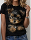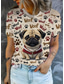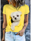 Mulheres Camiseta Imprimir Gráfico Animal Cachorro Vintage à moda Clássico Manga Curta Gola Redonda Decote V Tops regulares Casual Diário Azul Branco / azul Preto Amarelo Cáqui Verão Primavera