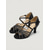 Sapatos de dança latina femininos pretos com strass, modelo aberto com tiras, ideais para salsa, tango e apresentações. &eventos de dança noturnos