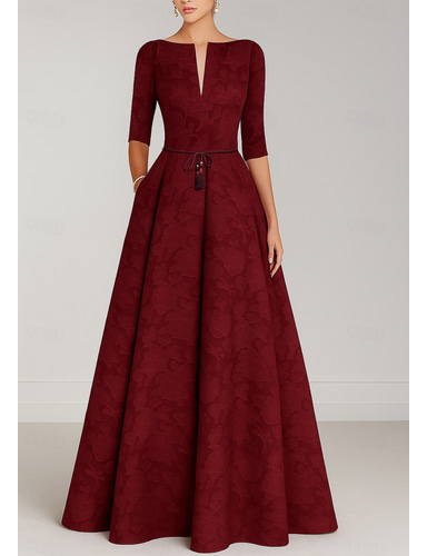 Vestidos Longo Vestido formal Vestido de noite Manga 3/4 Gola Redonda Elegante Simples Convidado do casamento Poliéster Vestido Para Mãe dos Noivos com Renda Cor Única