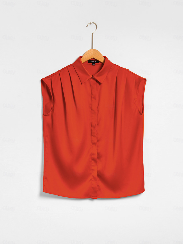 camisa feminina vermelha gola alta sem mangas solta lisa casual diária verão