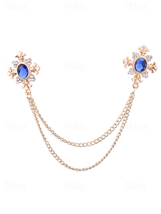 broche de corrente de colarinho de gema azul vintage – elegante broche de lapela de corrente dupla para homens e mulheres, acessório de camisa e terno estilo gótico vitoriano, joias formais para casamento e festa
