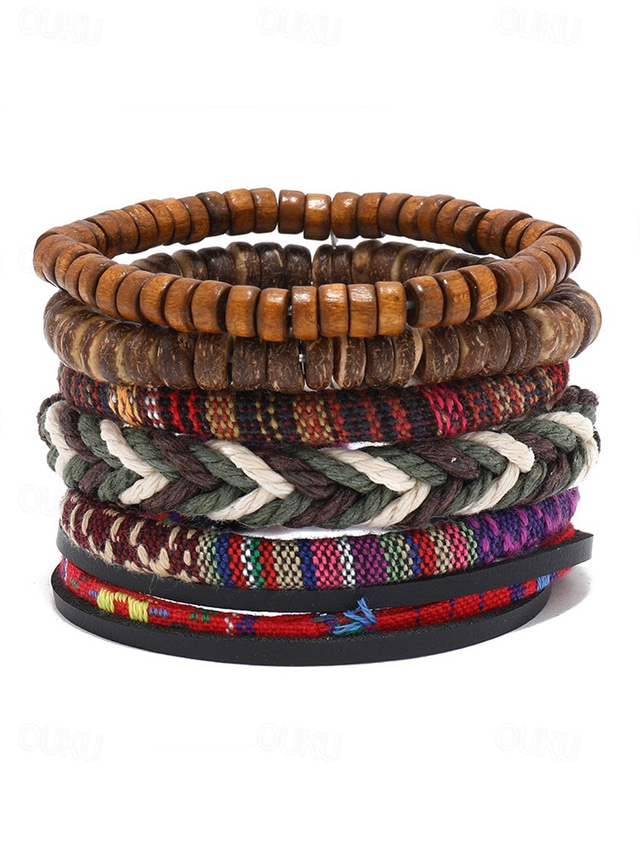 Gênero:Homens,Material:Madeira,Tecido,Estilo:Casual,Boêmio,Étnico,Tipo de Jóias:Pulseira,Braccialetto set,