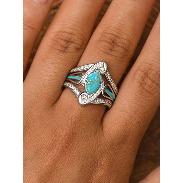 Gênero:Mulheres,Material:Turquesa,Liga,Estilo:Retro,Elegante,Moderno,Boêmia,Boêmio,Vintage,Ocasião:Festa,Tipo de Jóias:Anel,Tamanho do Anel Exibido:6,7,8,9,10,