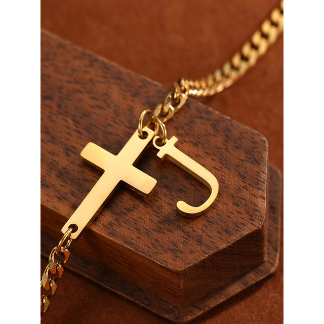 Tornozeleira feminina personalizada em aço inoxidável com pingentes de alfabeto, cruz e letras, presente de Natal ideal – 26 letras disponíveis.