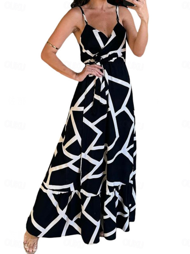 vestido maxi feminino com alça geométrica sem mangas verão primavera