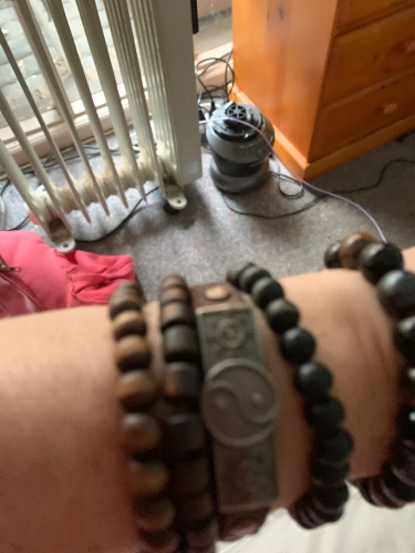 Nice set of natural wood metal and leather , beads on an elastacated setting main piece is leather belted strap and adjustable Nice set of natural wood metal and leather , beads on an elastacated setting main piece is leather belted strap and adjustable