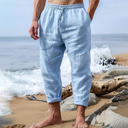 Homens Calças de linho Calças Calça verão Calças de praia Bolsos Com Cordão Cintura elástica Tecido Conforto Respirável Ao ar livre Diário à moda Hip hop Branco Azul