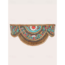 cinto feminino boêmio feito à mão com contas, faixa elástica elástica com borlas e pingentes - design bordado colorido feminino, perfeito para roupas de praia, festivais e ocasiões de verão