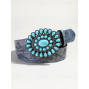 Cinto concho turquesa ocidental feminino – cinto de couro sintético com gravura floral para rodeio, festivais, trajes boho e uso casual