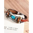 Men's Turquoise Leather Cuff Bracelet with Skull and Metal Accents, Bohemian Western Style, Perfect for Casual and Everyday Wear |