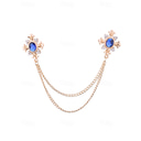 Vintage Blue Gem Collar Chain Brooch – Elegant Double Chain Lapel Pin for Men & Women, Gothic Victorian Style Shirt & Suit Accessory, Formal Wedding & Party Jewelry |