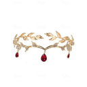 Gold Leaf Headpiece with Blue Gemstone Drops – Vintage Bohemian Tiara for Women, Perfect for Weddings, Renaissance Fairs and Cosplay |